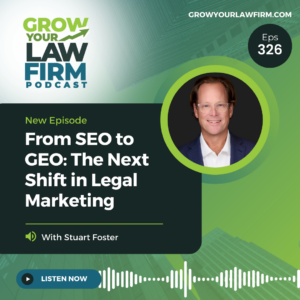 Welcome to episode 326 of Grow Your Law Firm, hosted by Ken Hardison. In this episode, Ken welcomes back Stuart Foster, fractional CMO and marketing transformation expert. Stuart works with law firms …